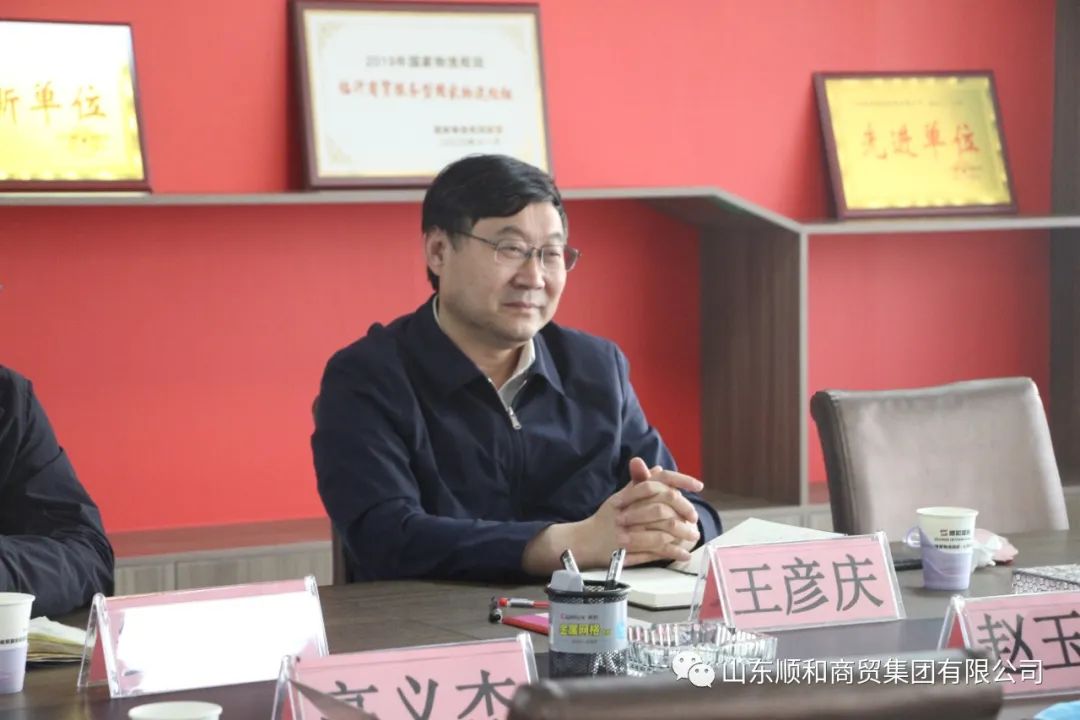 5月13日下午,國家發改委綜合運輸研究所主任王彥慶一行蒞臨山東順和國際智慧物流園中國物流之都展覽館考察指導工作,集團黨委書記趙玉璽,集團黨委副書記、董事長許大勇,集團黨委委員、副總經理張磊等陪同接待。