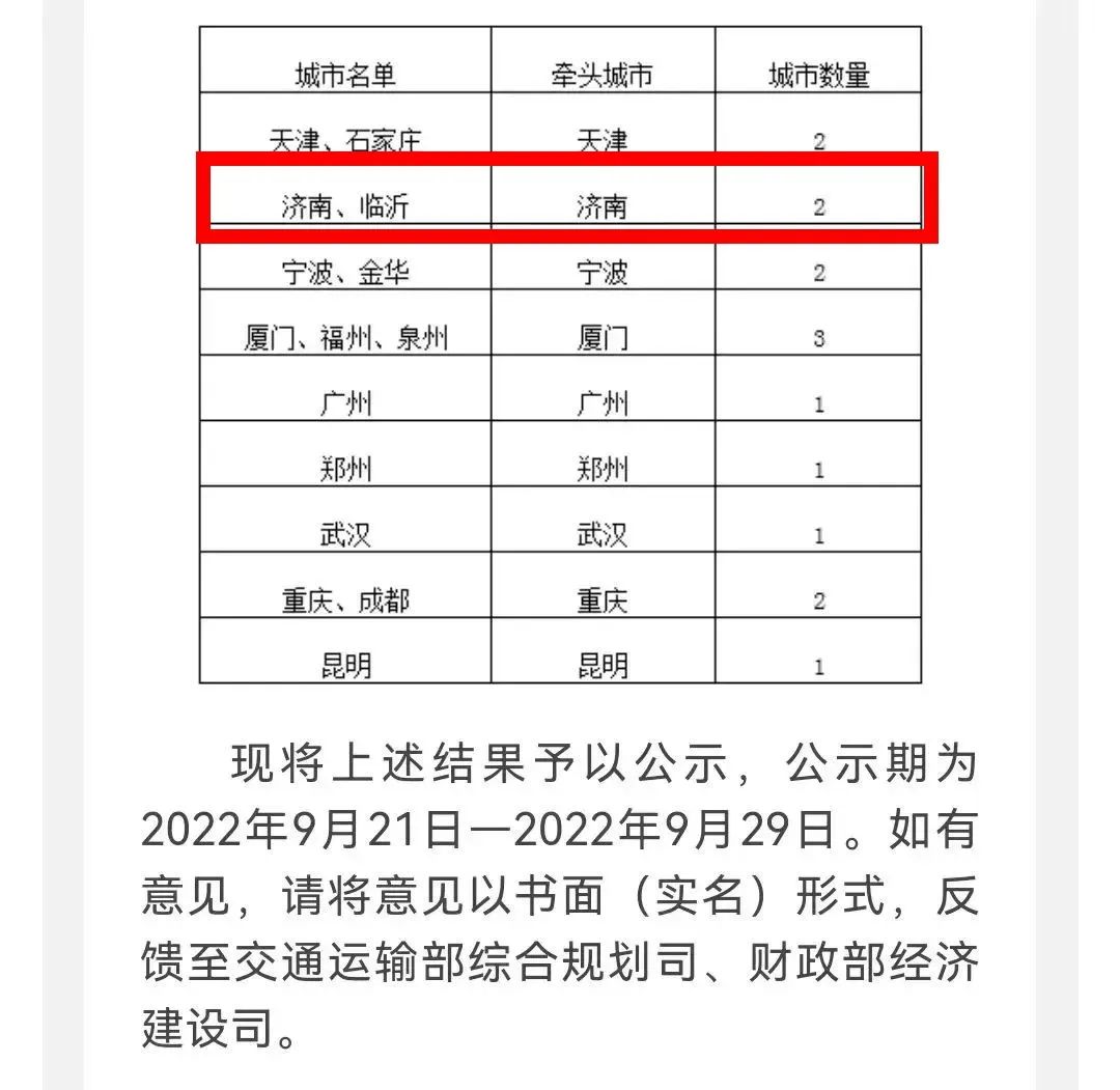 9月21日,交通運輸部公示2022年國家綜合貨運樞紐補鏈強鏈首批城市,山東濟南、臨沂兩個城市入選,公示期為2022年9月21日—2022年9月29日。