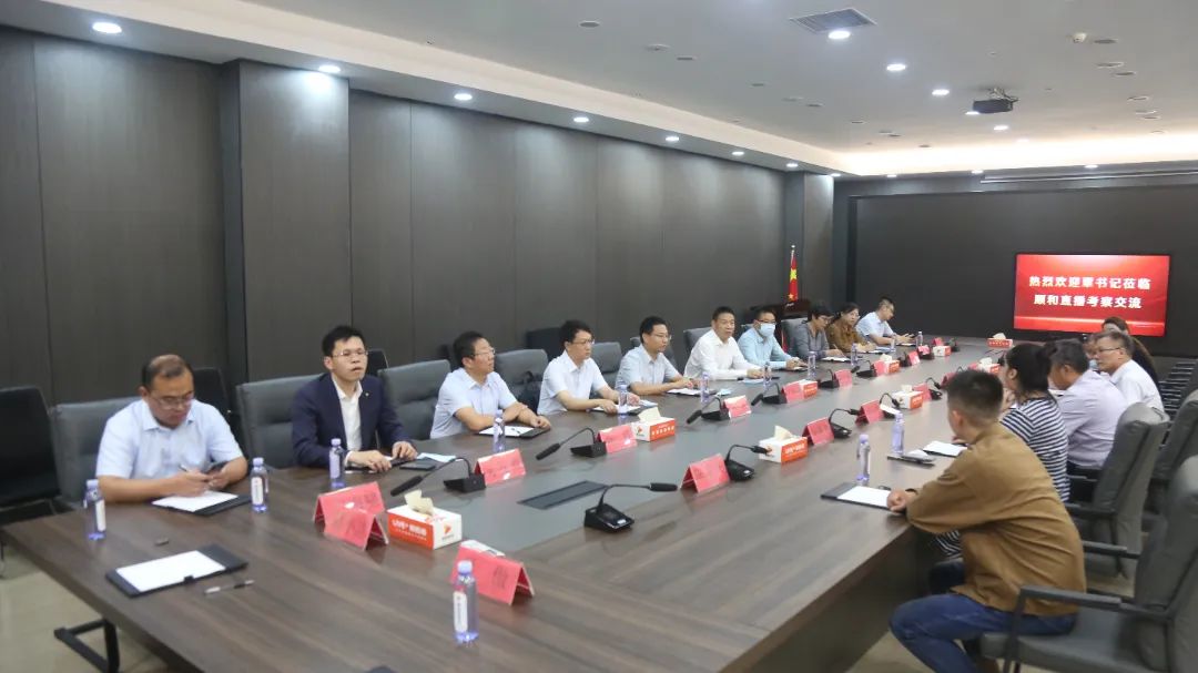 9月1日安徽省淮北市市委書記覃衛國,淮北市委常委、秘書長汪繼宏,淮北市政府副市長黃韋華,市投資促進中心主任王莉,市科技產業投資發展有限公司董事長徐君,喬爾瑪(山東)公司代表程建設等領導一行組成考察團蒞臨順和直播考察調研。山東順和集團黨委副書記、董事長許大勇,山東順和集團副總經理李學鋼陪同考察。