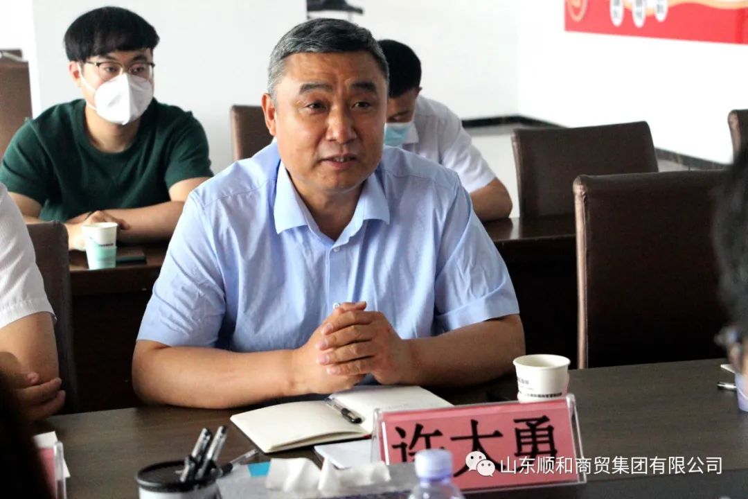 5月25日上午,湖北宜昌市人民政府物流辦公室黨組書記、主任任小軍一行蒞臨山東順和集團(tuán)參觀考察,集團(tuán)黨委副書記、董事長許大勇,集團(tuán)黨委委員、副總經(jīng)理張磊,集團(tuán)董事、副總經(jīng)理李邦等陪同接待。
