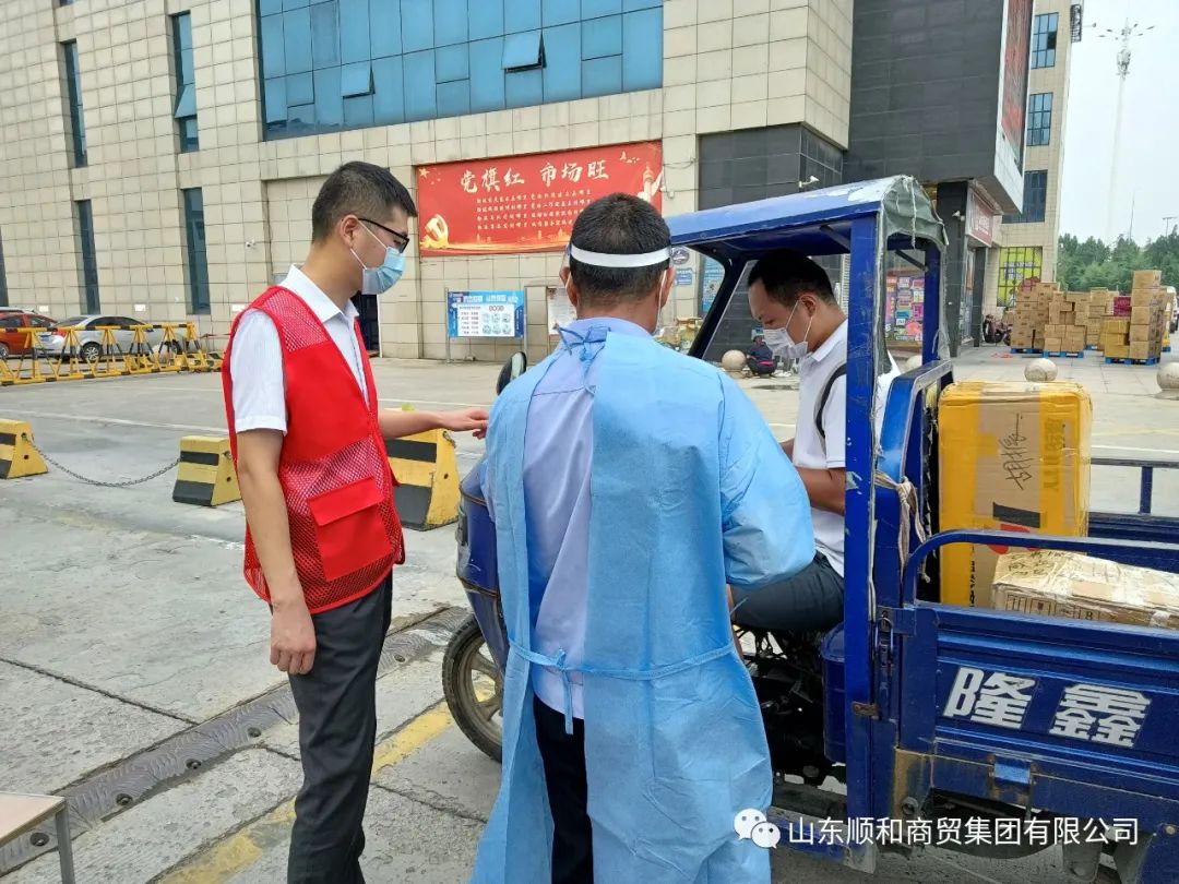 集團及時向所轄市場中的業戶普及疫情防控知識,加強疫情聯防聯控、精準防控。對進入市場人員,嚴格執行“場所碼”掃碼規定及測溫、戴口罩等,提高園區司乘人員、裝卸人員和工作人員自我防范意識和主動防控能力,形成了眾志成城、全員抗疫的良好氛圍。