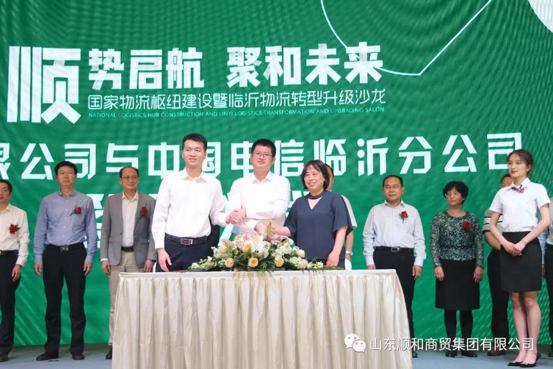 隨后,山東順和國際物流有限公司分別與臨商銀行、民生銀行臨沂分行、中國電信臨沂分公司、天翼智聯、中國移動臨沂分公司簽訂戰略合作協議。山東順和物聯科技有限公司與臨沂市勞保商會、中大運和國際物流有限公司簽訂合作協議。
