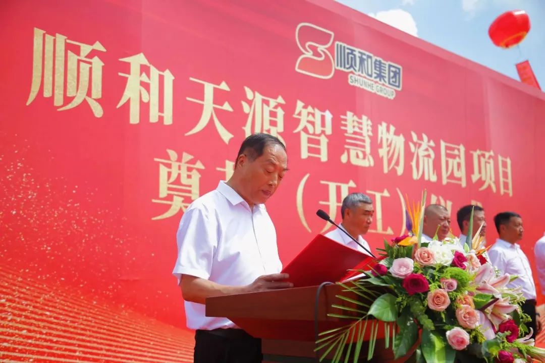 順和集團黨委書記趙玉璽講話,他指出:順和集團作為富有生命力和創新力的企業,始終堅持黨的領導,積極響應國家號召,配合市區兩級爭取到“中國物流之都和國家物流樞紐”兩張王牌,建設了臨沂樞紐增量項目順和國際智慧物流園,成為臨沂商貿物流轉型升級的催化劑和新引擎;同時積極響應市區兩級“現代物流城”“四個商城”建設要求,高標準設計、高起點定位、高效率推進臨沂樞紐存量項目順和天源智慧物流園建設,成為臨沂西部現代物流城最先開工建設的物流園區之一。