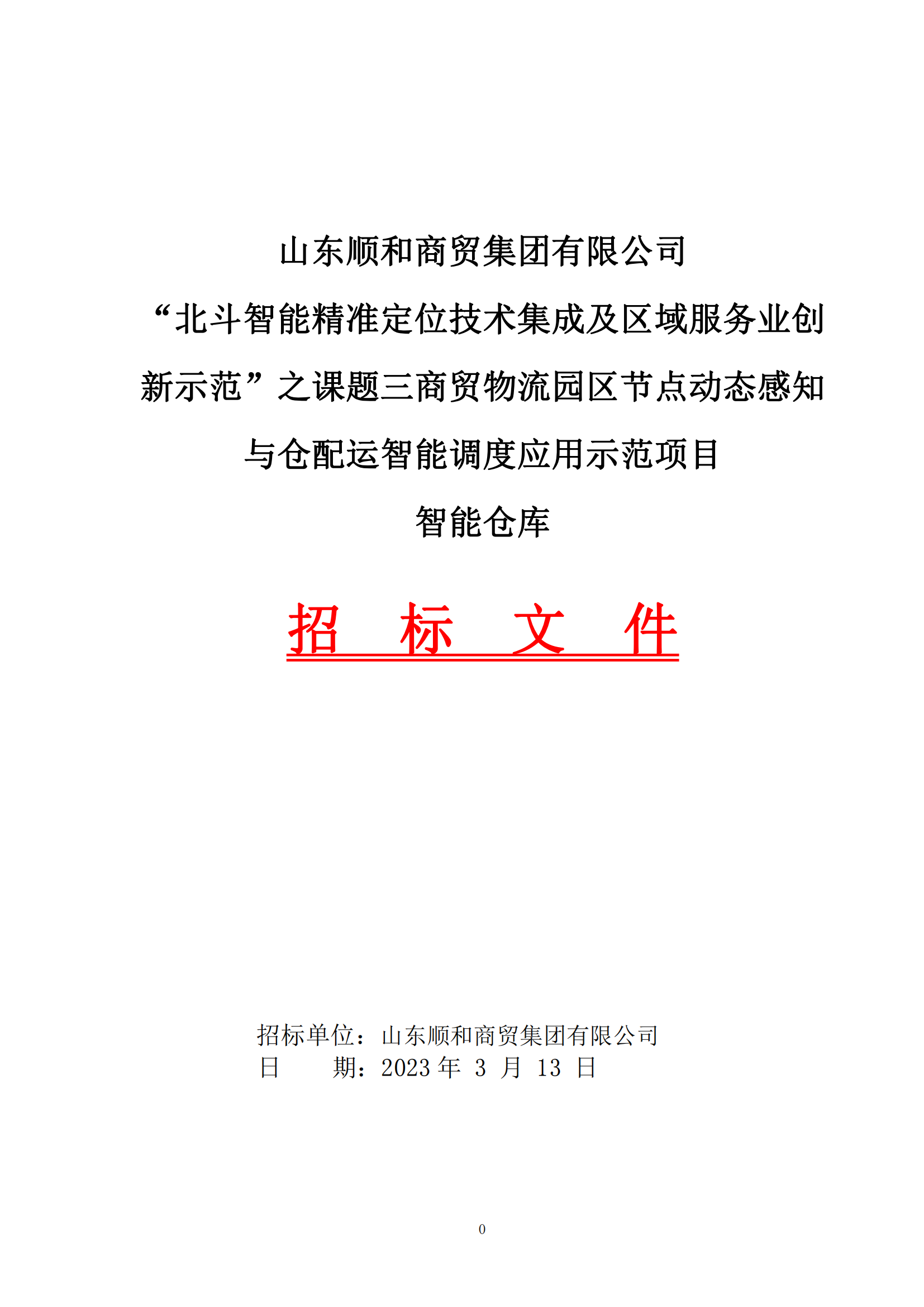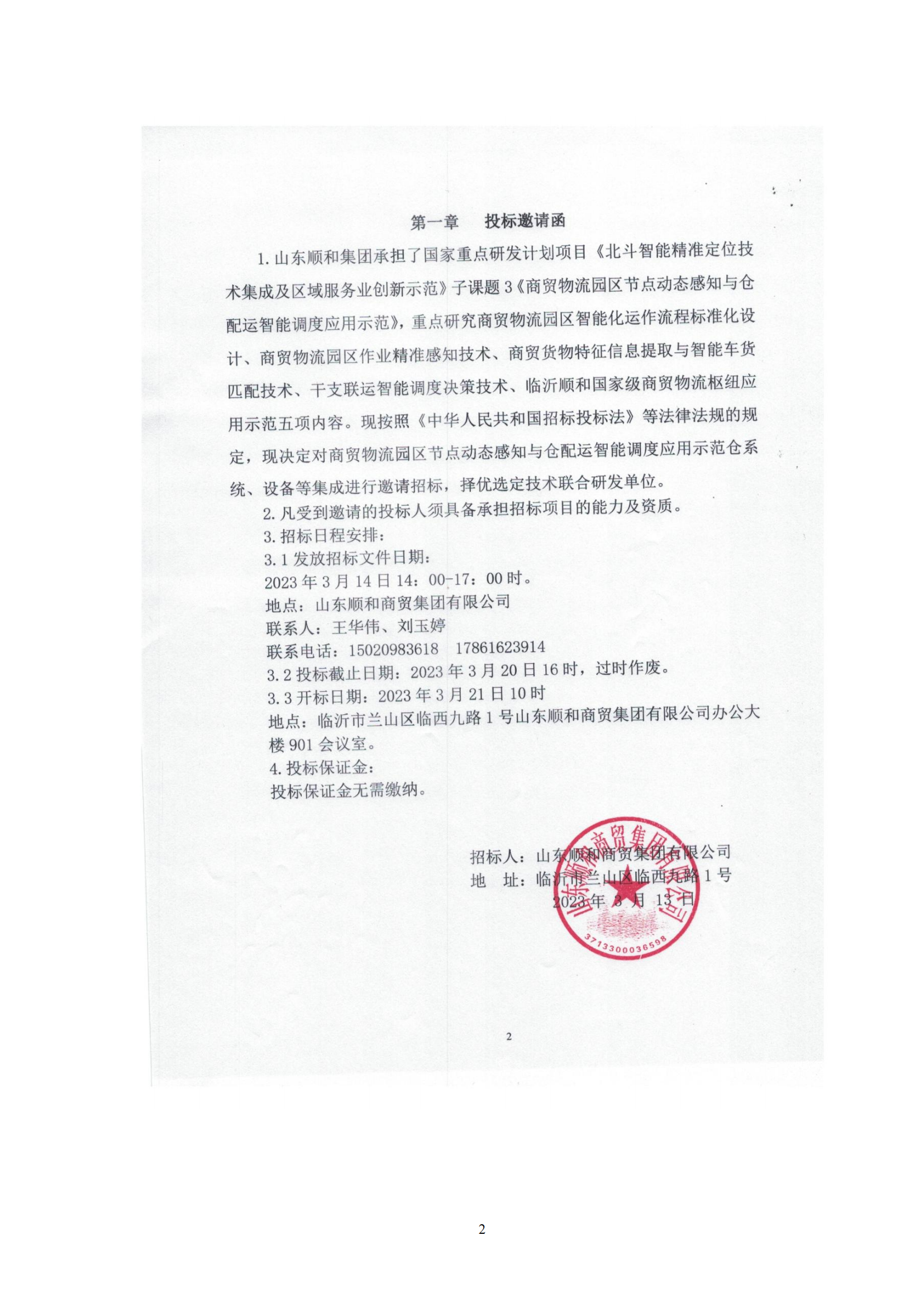 山東順和商貿(mào)集團(tuán)有限公司關(guān)于《商貿(mào)物流園區(qū)節(jié)點(diǎn)動態(tài)感知與倉配運(yùn)智能調(diào)度應(yīng)用示范項(xiàng)目》招標(biāo)公告